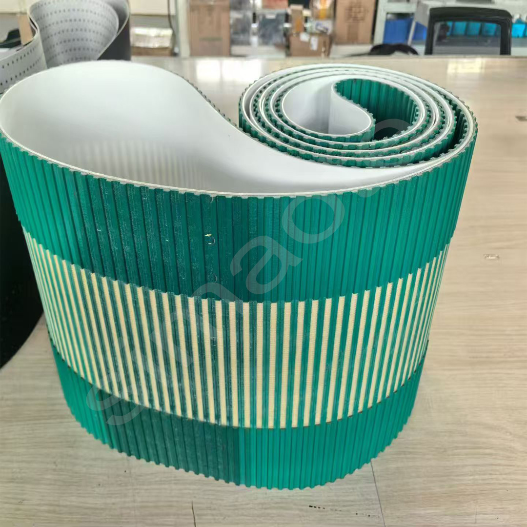 橡膠同步帶傳動是由一根內(nèi)周表面設(shè)有等間距齒形的環(huán)行帶及具有相應(yīng)吻合的輪所組成。它綜合了帶傳動、鏈傳動和齒輪傳動各自的優(yōu)點。轉(zhuǎn)動時,通過帶齒與輪的齒槽相嚙合來傳遞動力。 傳輸龍同步帶傳動具有準(zhǔn)確的傳動比,無滑差,可獲得恒定的速比,傳動平穩(wěn),能吸振,噪音小,傳動比范圍大,一般可達(dá)1:10。允許線速度可達(dá)50M/S,傳遞功率從幾瓦到百千瓦。傳動效率高,一般可達(dá)98%,結(jié)構(gòu)緊湊,適宜于多軸傳動,不需潤滑,無污染,因此可在不允許有污染和工作環(huán)境較為惡劣的場所下正常工作。 傳輸產(chǎn)品廣泛用于紡織、機(jī)床、煙草、通訊電纜、輕工、化工、冶金、儀表儀器、食品、礦山、石油、汽車等各行業(yè)各種類型的機(jī)械傳動中。橡膠同步帶的特點   (1)傳動準(zhǔn)確,工作時無滑動,具有恒定的傳動比;  (2)傳動平穩(wěn),具有緩沖、減振能力,噪聲低;  (3)傳動效率高,可達(dá)0.98,節(jié)能效果明顯;  (4)維護(hù)保養(yǎng)方便,不需潤滑,維護(hù)費用低;  (5)速比范圍大,一般可達(dá)10,線速度可達(dá)50m/s,具有較大的功率傳遞范圍,可達(dá)幾瓦到幾百千瓦;  (6)可用于長距離傳動,中心距可達(dá)10m以上。橡膠同步帶傳動的主要失效形式  ①帶體疲勞斷裂;   ②帶齒剪斷和壓潰;   ③帶側(cè)、帶齒磨損、包布剝離;   ④承載層伸長、節(jié)距增大、形成齒的干涉、爬齒;  ⑤沖擊、過載使帶體斷裂。